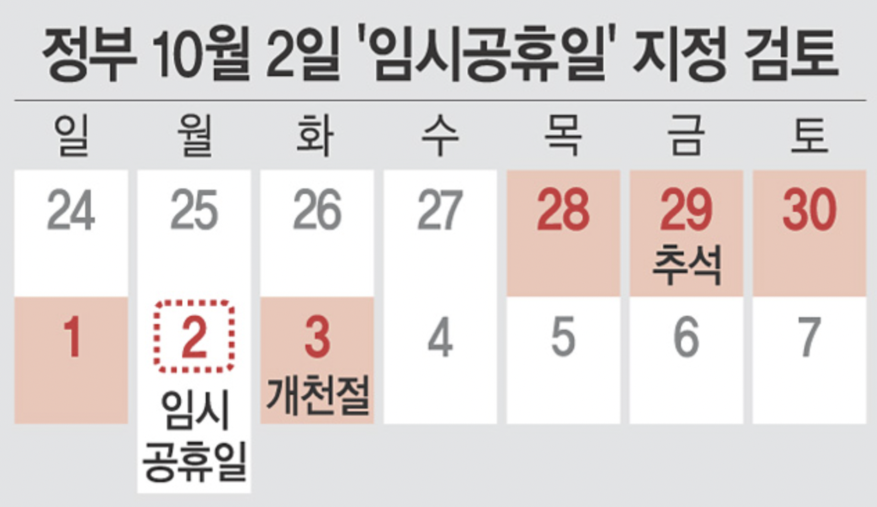 10월 2일 임시 공휴일로 지정 긍정적 검토