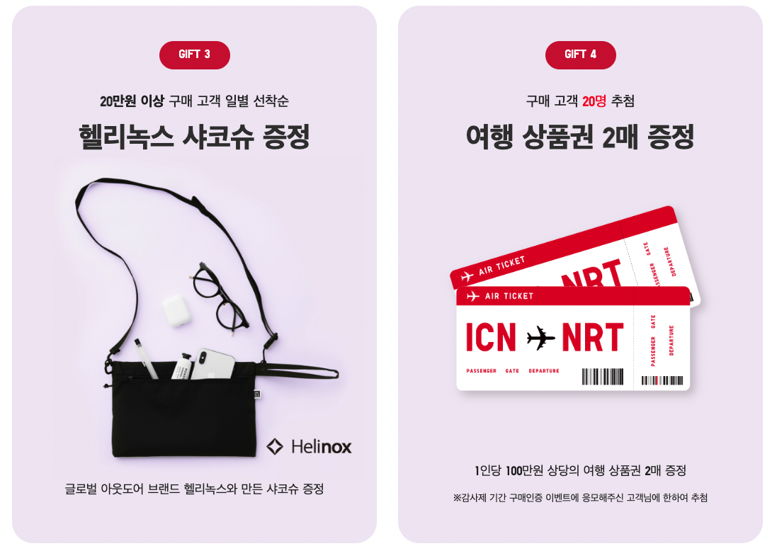 구매 고객 20명 추첨 - 1인당 100만원 상당의 여행 상품권 2매 증정