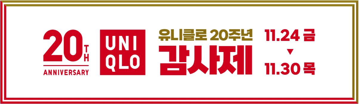 매년 이맘때 쯤이면 블랙프라이데이 시즌이 찾아 오는데요, 유니클로에서는 감사제라는 이름으로 매년 이벤트를 진행하고 있습니다. 올해는 특히 20주년을 맞이해 다양한 이벤트가 있다고 합니다. 인기 제품 할인 행사와 스페셜 기프트, SNS 이벤트등 여러 정보를 정리해 보았는데요, 일년에 한번 뿐인 블랙프라이데이 시즌 기회 놓치지 말고 꼭 혜택 받으시길 바랍니다!